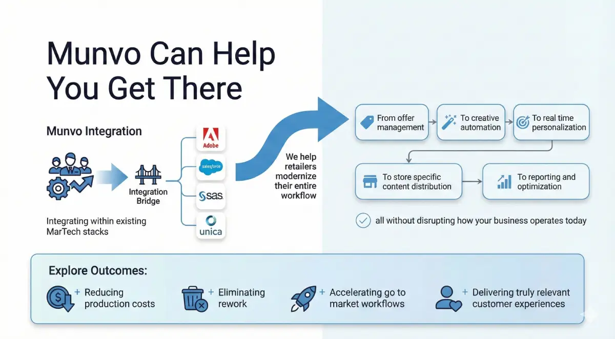 Munvo team works directly with retailers to bring this new class of retail ready technology to life integrating it within existing MarTech stacks like Adobe, Salesforce, SAS, and Unica.
